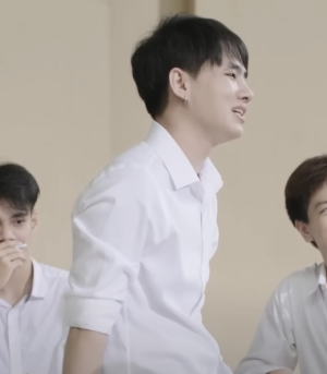 When Pa, Gigie, and Noey are going around asking upperclassmen for their signatures, Boss and his friends attempt to get something in return from them. Pa offers for them to dance to "Roasted Chicken" for them, but he tells them not to, only that he wants their chat IDs. However, he gets stopped by Ink, who loudly interrupts that she can give him her chat ID instead. She reminds him that there is a rule not to harass the freshmen, and he defends himself saying he was just teasing them. With Ink watching, he agrees to give the girls his signature and tries to give it back to them, but Ink takes it from him first before telling them to go get something to eat. He and his friends acquiesce.